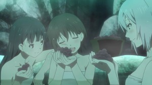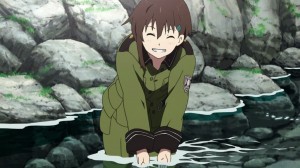 The field trip involves one carrying a very heavy bag along. Kanata, Kureha and Noel checking on three devices that protect the towns along with it, with these heavy bags that is nearly impossible to carry without wearing yourselves out. Kanata, the genki girl found the first box and also the one that decided to have fun in the river, splashing water at Kureha and Noel. However, they have their bags rummaged by animals looking for food and the compass being stolen. They finally abandoned the bags which Kureha complained about when they are traveling… wow…