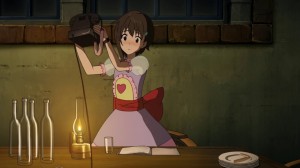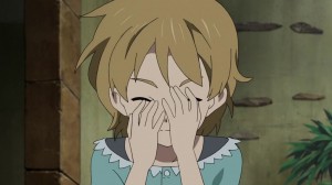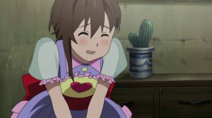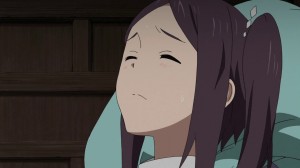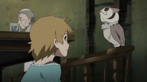 You wished there was such thing as a cell phone or cordless phone, so you don’t have to stay in the same room all day… Like Episode 5, besides towards the end is a lighthearted episode. Some may whine about the added fanservice added to the episode or with Kanata wearing something that looks like a short dress. However, the fanservice is not like flashing pantsus or anything overall sexual, so I didn’t have any problems with it and with the later episodes getting more serious by the phone call Rio gets at the end of the episode, I wouldn’t write it off because of this one episode. However, I find this amusing. The whole episode takes place in this one room where Kanata is eventually left alone to wait for that phone call. The two children and the priest eventually come to visit Kanata. They decide to make a phone thingy and play with it while Misho want to catch the team mascot, the Owl.